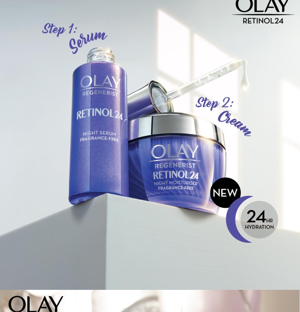 - Wake up to plumper, younger-looking skin with Olay Retinol24^